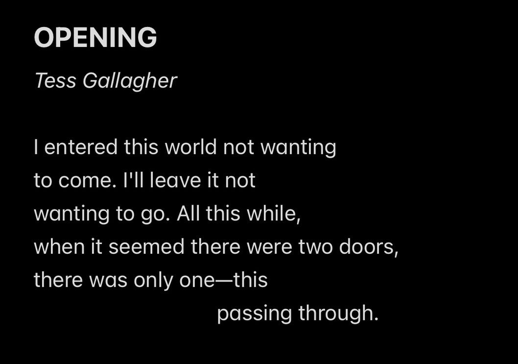 (also, Tess Gallagher's poem!! so gorgeous!!)